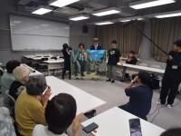 退職女性教員でつくる「白萩の会」の「戦争語り部」公演で使用される3枚の絵がこのほど完成し、制作に関わった美術科の有志生徒から「白萩の会」への引渡会が、10月1日(水)放課後に開かれました。