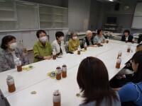 絵の受け取りに来校した「白萩の会」の皆さんは、披露された絵を見て大いに感激。今後の「語り部」活動がいっそう充実すると喜んでおられました。生徒一人一人から「絵を描きながら戦争の悲惨さを改めて感じた」などの感想もありました。セレモニーの後は、お茶とお菓子で懇談しました。