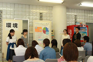 本校普通科・総合学科2年次生を対象に夏に実施している宿泊研修で,総合学科生77名が株式会社野村総合研究所を訪問しました。訪問先では「コンサル一日体験プログラム」(起業・まちづくり分野)・「IT戦略体験プログラム」(ものづくり・環境分野)の2つのグループに分かれての体験を行いました。この訪問は初めての試みでしたが,歓待を受けて非常に和やかなムードの中,「人気のないある企業のサッカーチームの観客動員数を増やすために」や,「コンビニの売り上げを上げるために」といったテーマについて,データ等の資料をもとにディスカッションや発表を行いました。